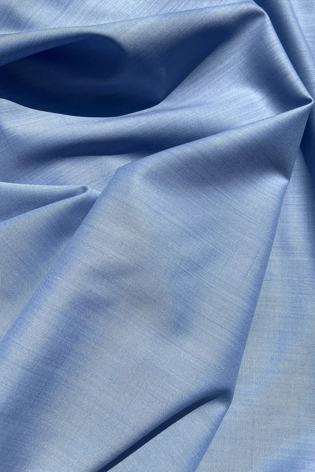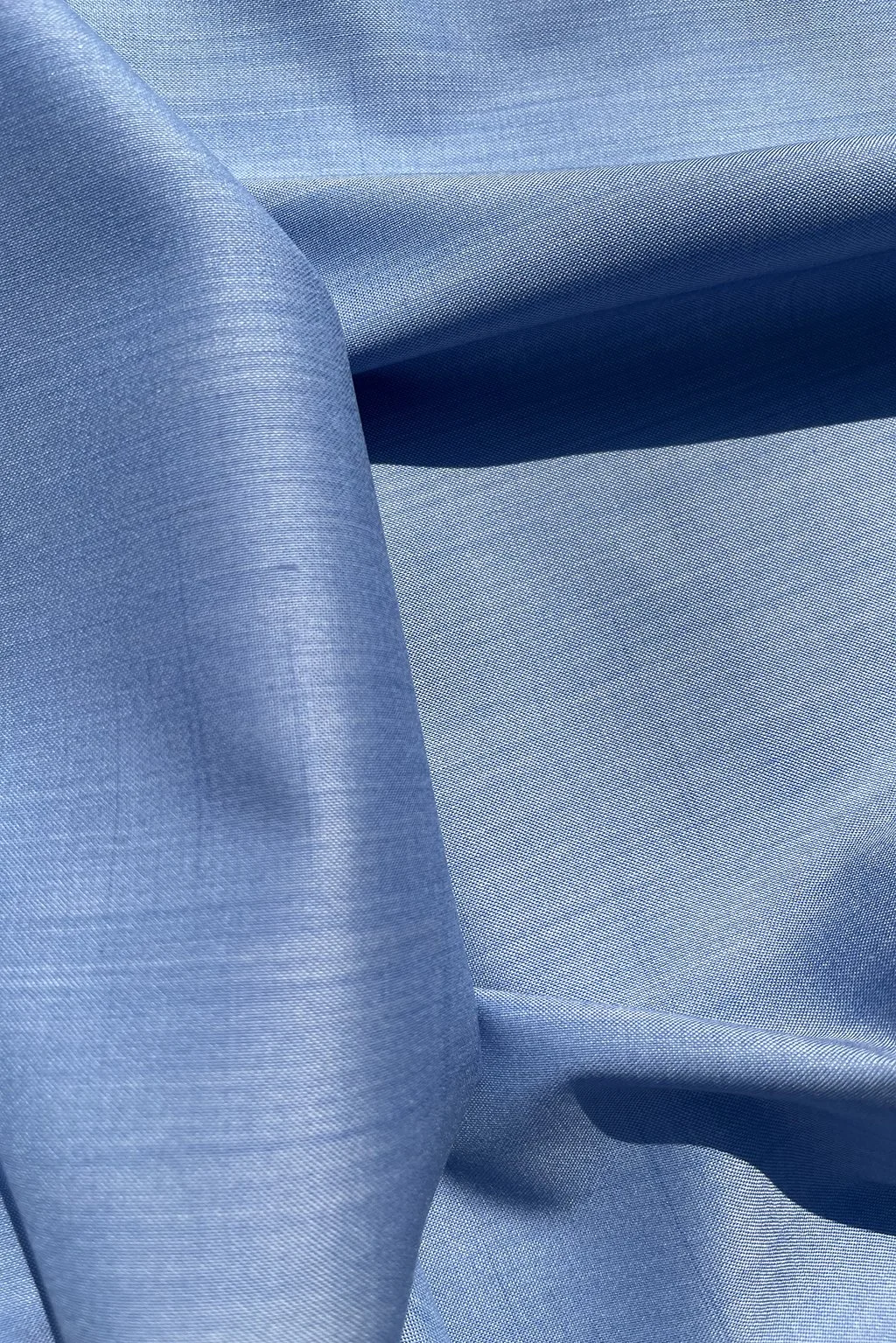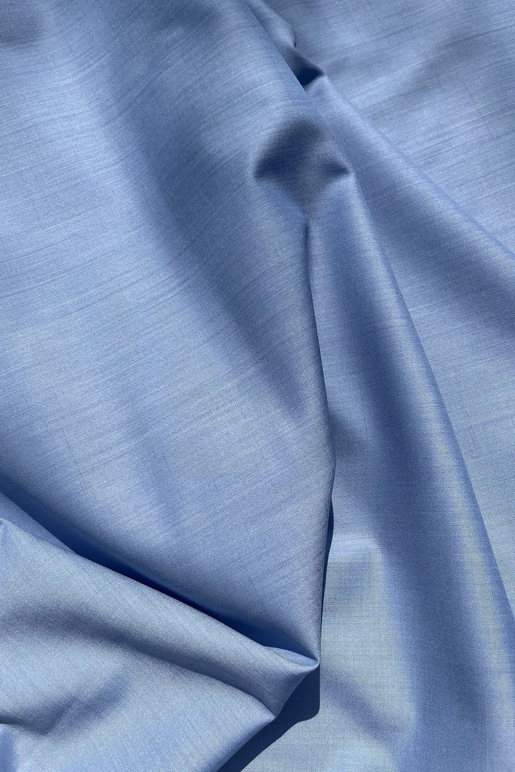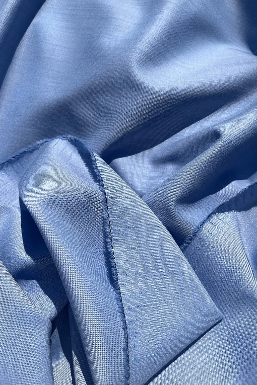 Gorgeous Italian virgin wool in shades of sky blue. This fabric is ideal for a top, a shirt or a dress. It has a little bit of stretch, soft feel and drapes well.